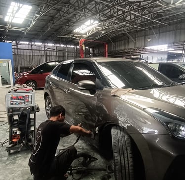 Kami menggunakan cat oven cibubur kualitas impor premium bengkel mobil Cibubur yang tahan terhadap sinar UV, hujan, dan goresan ringan. Cat oven ini sangat cocok untuk repaint, touch up, atau penggantian warna kendaraan secara menyeluruh.